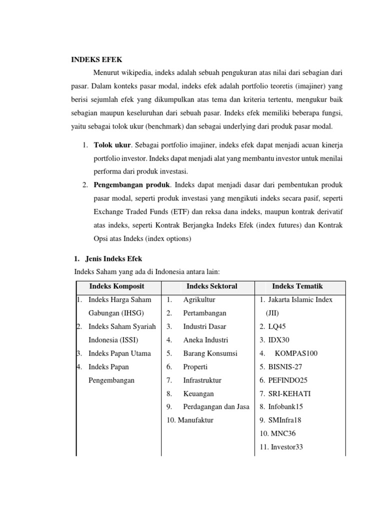 Jenis Jenis Indeks Di Bursa Efek Indonesia Capital Market Education S By Coki Bursa Efek Dollar Hari Ini