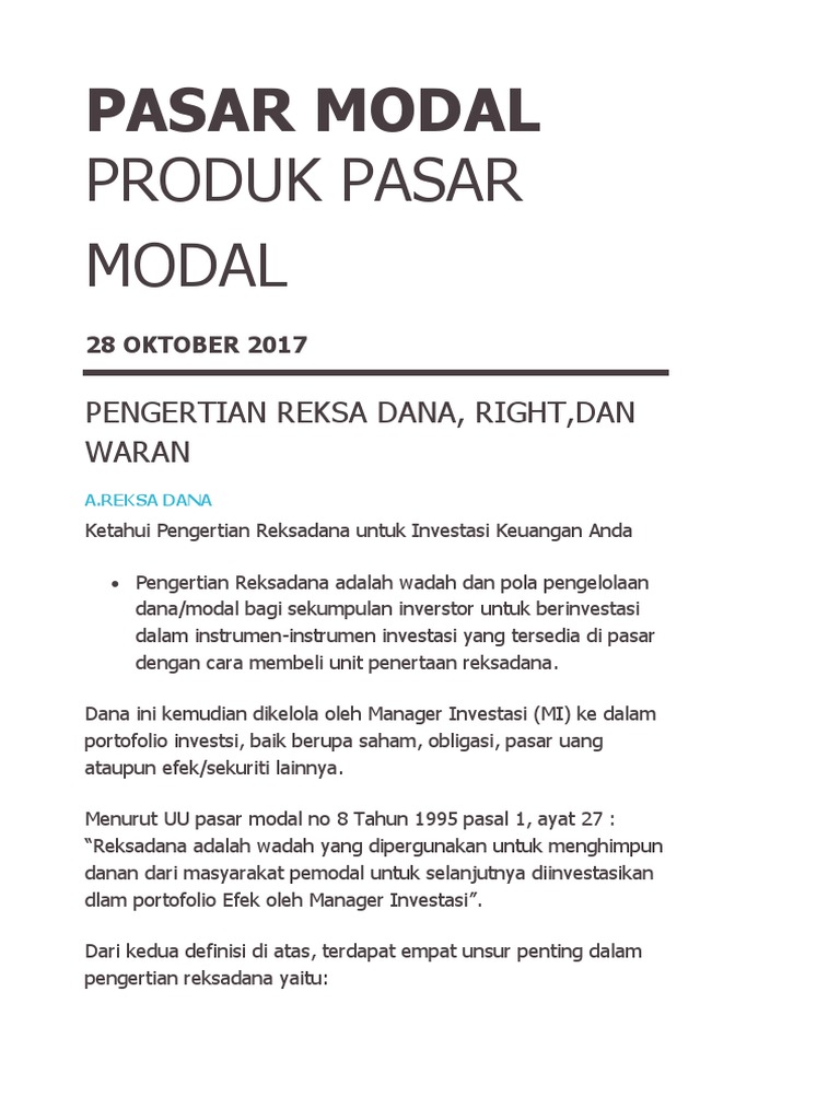Reksadana Pengertian Sejarah Jenis Bentuk Kinerja Resiko Bursa Saham Buka Tutup